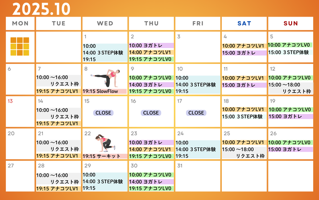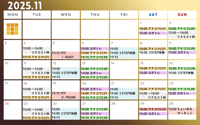 上記スケジュール表の空いている時間および「リクエスト枠」「3STEP体験」の時間は御予約可能です。